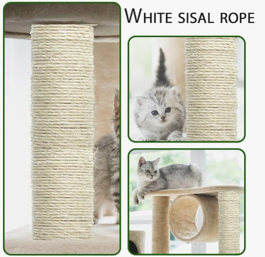 5. Økonomi og praktisk: Som et naturlig fibermateriale er sisalstenger relativt lave kostnader og enkle å behandle og installere. Å bruke sisalstenger i tretårnet Cat Tree Climbing Frame kan redusere produksjonskostnadene, forbedre det praktiske og kostnadseffektiviteten til produktet, og oppfylle behovene og forventningene til kjæledyrseiere.