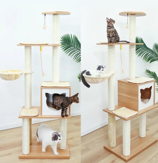 | Holdbarhet og stabilitet | Miljøvennlig tre har naturlig styrke og seighet, tåler katter klatring og hopping, har god korrosjonsmotstand og insektmotstand, og forlenger levetiden til kattetreet |