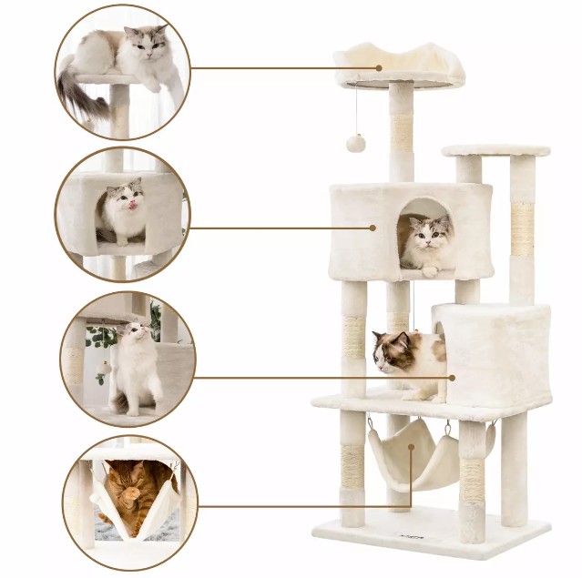 2. Gi et skjult og trygt hvileplass: Kattetrær er designet med flere plattformer og reir, og gir katter et rolig og behagelig hvilemiljø. Katter kan velge forskjellige steder å hvile i henhold til deres preferanser. Disse plattformene og reirene får katter til å føle seg trygge og avslappede, og bidrar også til deres fysiske og mentale helse.