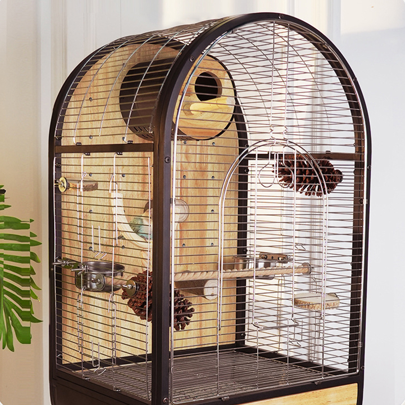 Naturstål tre fuglebur flyttbar villa papegøye avlsbur
