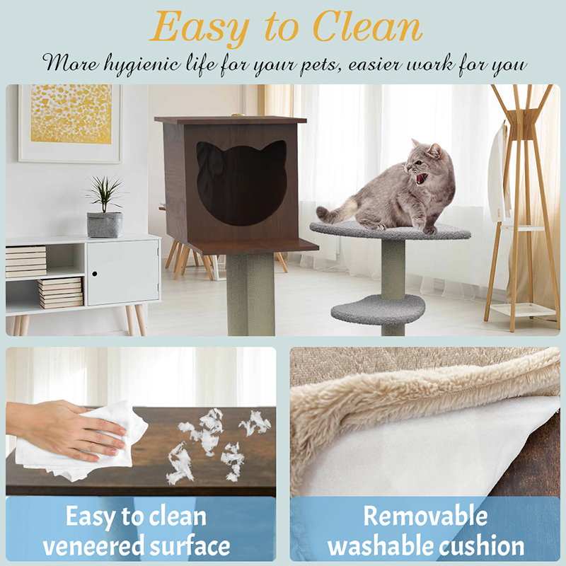 3.OMNI-retningsbeskyttelse: Tykne søyler og naturlig sisal tau er tett såret, med sterk bærende kapasitet og vitenskapelig høydeutforming for å sikre at katten din er så stabil som et fjell hver gang den hopper.