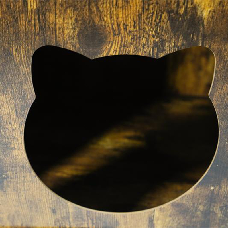 1. Et trygt rom for kjæledyr: Cats-bur i møblerstil er en helt lukket miljøvennlig sponplater med en katt ansiktsformet ventilasjonsdør, som ikke bare oppfyller kattens behov for privat plass, men også sikrer luftsirkulasjon, slik at eieren kan holde rede på kjæledyrets dynamikk når som helst. Sidelagringshylleutformingen holder kjæledyrforsyning i orden og mer praktisk å bruke.