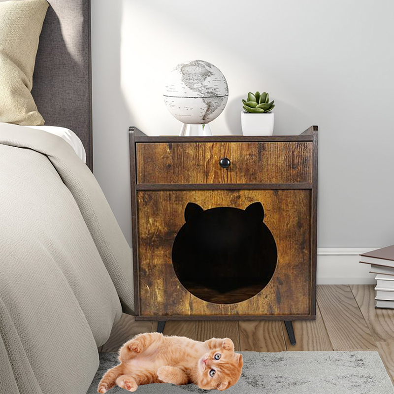 1. Bedårende og morsom trygg plass: Møblerstilkatter Bur fire sider omgitt av høykvalitets partikkelbrettstruktur, med katt ansiktsmodellering av døråpning, ikke bare for å møte naturen til kattebegravende, men også for å gi 360 ° all-round beskyttelse.